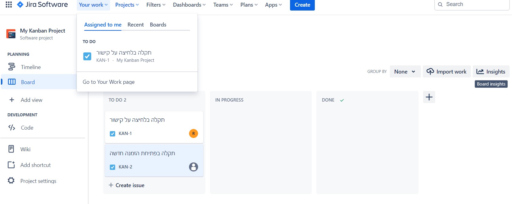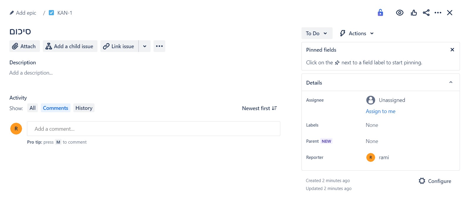 לאחר שקיסטמנו לפי הצורך ה TO DO, ניתן לפתוח טיקטים ומשימות לפי ההגדרות בצורה הבאה: