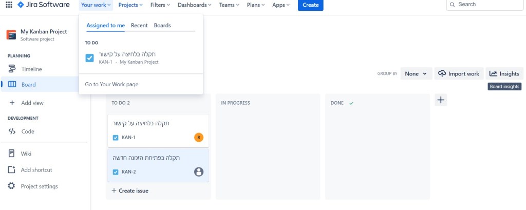 בכפתור ה To Do ניתן משימות לביצוע, בעמודת ה In Progress ניתן להוסיף משימות לביצוע, כמובן שניתן בגרירה להעביר משימות מסטטוס לסטטוס בהתאמה, סטטוס Done כמובן אלו משימות שבוצעו. בפלוס ניתן להוסיף עמודה נוספת – לדוג' לביצוע חוזר
